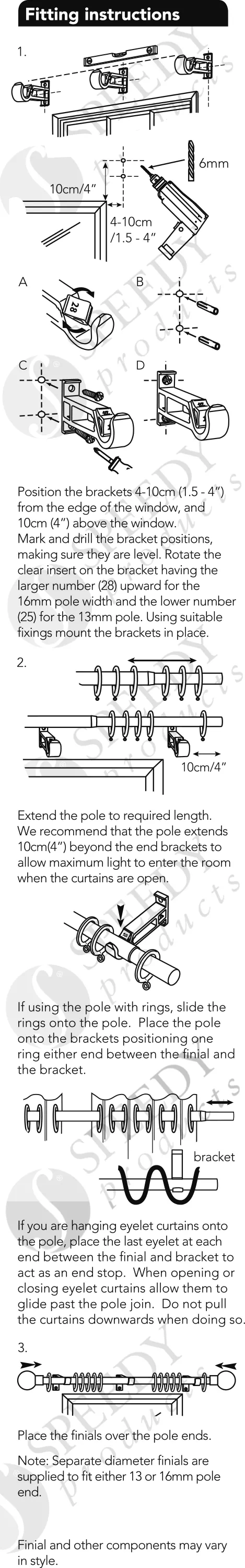 View the 13-16mm Extendable Curtain Pole Instructions from Speedy Products, with clear guidance for quick and easy fitting.