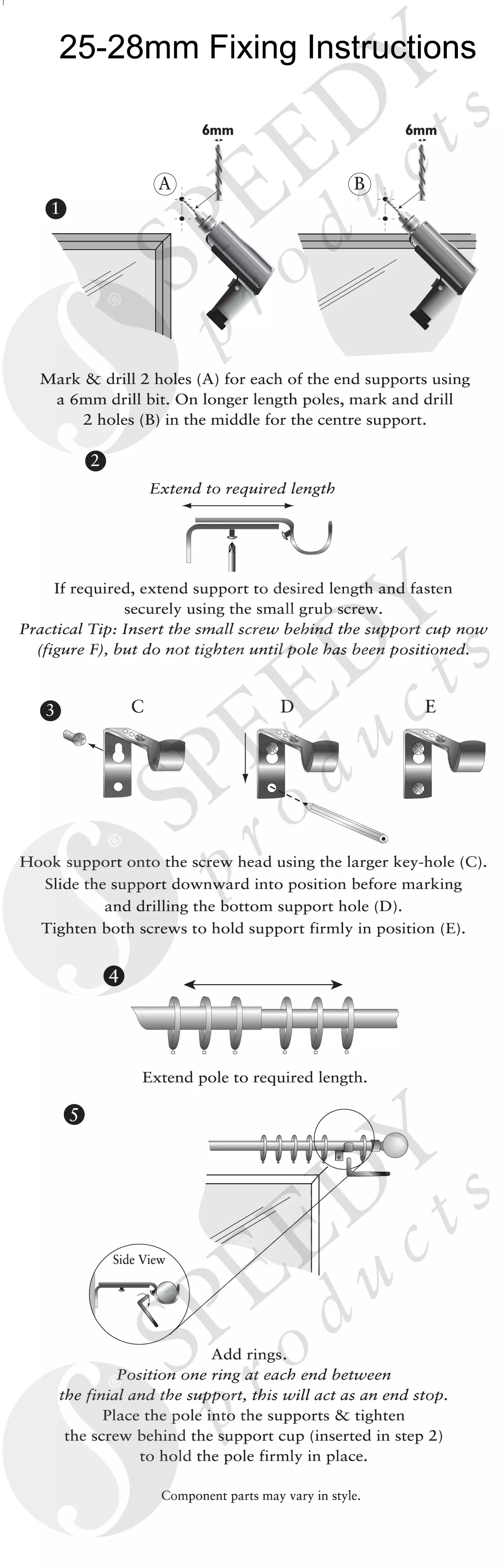 View the 25-28mm Extendable Curtain Pole Instructions from Speedy Products, with clear guidance for quick and easy fitting.