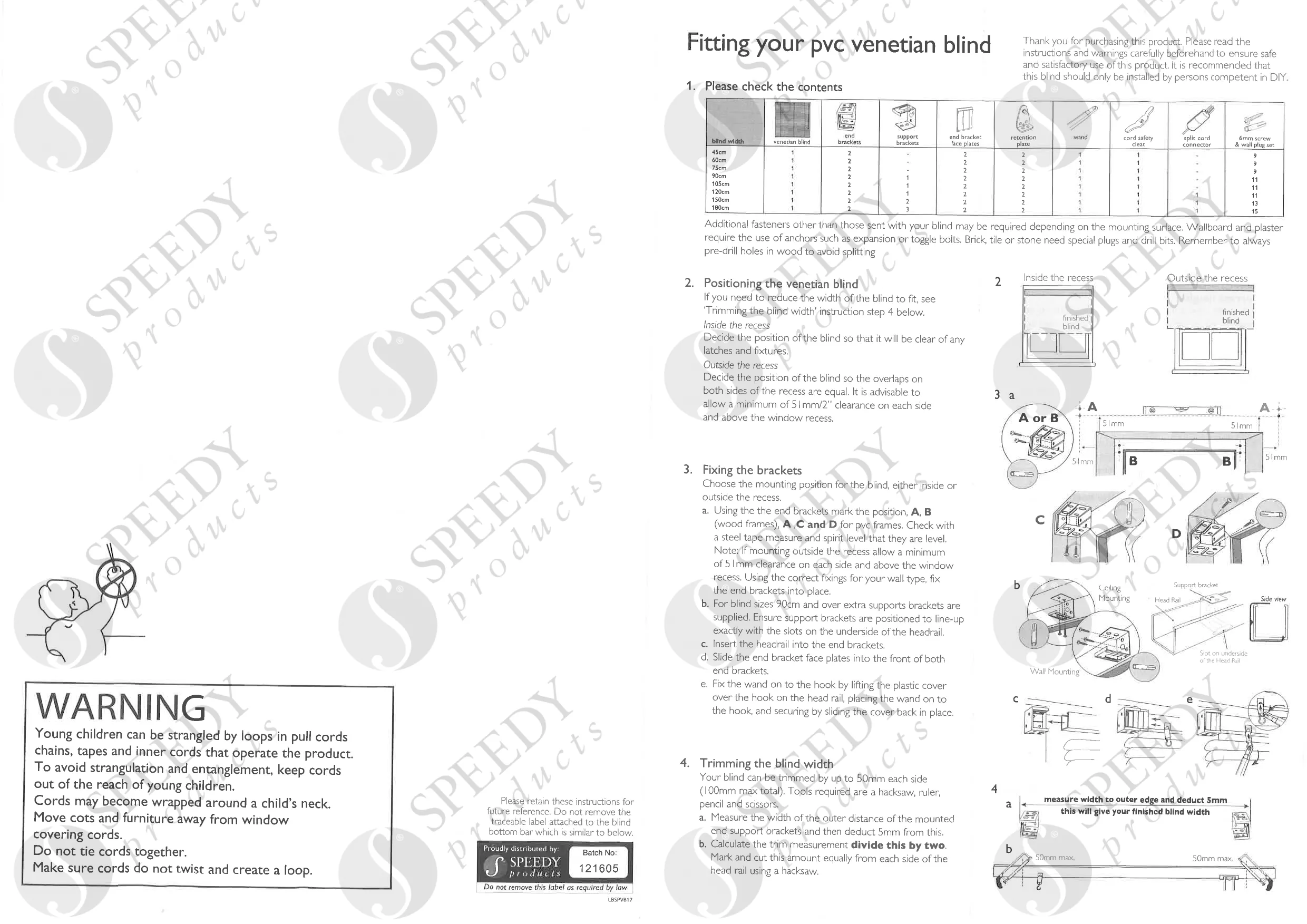 View the PVC Venetian Blind Instructions from Speedy Products, with clear guidance for quick and easy fitting.